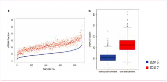 博奧晶典與南京市婦幼保健院合作開發(fā)的胎兒游離DNA富集方法可用于NIPT的檢測(cè)?;仡櫺缘貙?duì)1415份孕婦外周血血漿樣品進(jìn)行了胎兒游離DNA富集,將結(jié)果與最初的NIPT結(jié)果進(jìn)行比較,結(jié)果表明胎兒DNA 濃度由11.3±4.2%提高到22.6±6.6%,實(shí)驗(yàn)失敗率顯著降低(0.1%對(duì)0.7%,P<0.01)。此外,在45.5%的假陰性病例中,采用胎兒濃度富集的新方法成功檢測(cè)到胎兒三體[1]。