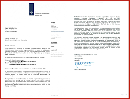 ? ? ? 近日,博奧晶典聯(lián)合清華大學(xué)成功研發(fā)的由新型冠狀病毒2019-nCoV核酸檢測試劑盒(全集成碟式芯片法),英文名稱:SARS-CoV-2 Nucleic Acid Detection Kit (Integrated Isothermal Amplification Chip Method)和全自動核酸分析儀,英文名稱:Automatic Nucleic Acid Analyzer組成的全集成芯片實驗室系統(tǒng)獲CE準(zhǔn)入資質(zhì)(證書號:NL-CA002-2021-55957和NL-CA002-2021-55450),獲CE準(zhǔn)入資質(zhì)表明該產(chǎn)品符合歐盟醫(yī)療器械相關(guān)指令的符合性要求,具備歐盟市場的準(zhǔn)入條件,將為歐洲地區(qū)的新冠疫情防控工作提供高靈敏度全集成快速檢測工具。