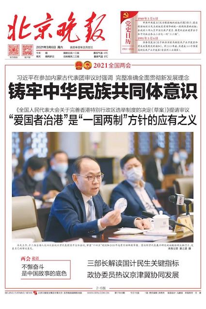 3月6日,十三屆全國人大四次會議北京代表團(tuán)召開全體會議,審查“十四五”規(guī)劃和2035年遠(yuǎn)景目標(biāo)綱要草案。圖為程京代表展示團(tuán)隊研發(fā)的全自動、全封閉式可在45分鐘內(nèi)以150拷貝/毫升靈敏度完成“樣本入-結(jié)果出”,35分鐘就能報陽的“全集成新冠病毒核酸檢測芯片”(于2021年2月9日獲國家藥監(jiān)局應(yīng)急審批批準(zhǔn)和歐盟CE-IVD認(rèn)證)。