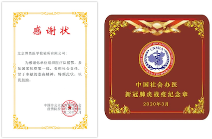疫情期間,博奧晶典獲評(píng)“清華大學(xué)抗擊新冠肺炎疫情先進(jìn)集體”、博奧晶典黨支部也榮獲“清華大學(xué)先進(jìn)黨組織(黨支部)”稱號(hào);中國非公立醫(yī)療機(jī)構(gòu)協(xié)會(huì)向博奧晶典旗下博奧檢驗(yàn)援鄂醫(yī)療隊(duì)頒發(fā)感謝狀及紀(jì)念章;博奧晶典榮獲華夏時(shí)報(bào)“2020年度企業(yè)社會(huì)責(zé)任先鋒獎(jiǎng)”、南方醫(yī)學(xué)網(wǎng)、基因谷、早篩網(wǎng)“2021基因檢測(cè)行業(yè)年度抗疫英雄企業(yè)”等榮譽(yù)稱號(hào)。