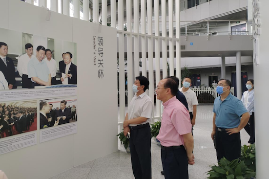 程京院士(左二)向同仁堂王貴平董事長(zhǎng)(左一)介紹博奧生物集團(tuán)