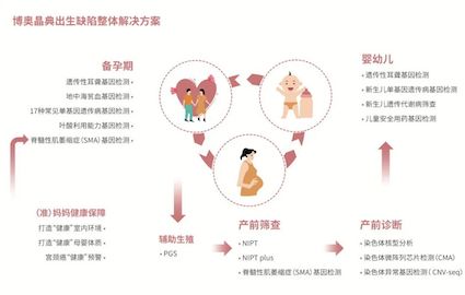 此外,博奧晶典結(jié)合國內(nèi)外出生缺陷預(yù)防發(fā)展及臨床需求,不斷更新婦幼健康檢測(cè)產(chǎn)品并提升醫(yī)學(xué)檢驗(yàn)服務(wù)能力,構(gòu)建孕前、產(chǎn)前及新生兒三級(jí)防控體系,打造出生缺陷及罕見病精準(zhǔn)防控平臺(tái)。博奧晶典婦幼健康檢測(cè)項(xiàng)目包含染色體異常系列如無創(chuàng)產(chǎn)前基因檢測(cè)(NIPT)、染色體微缺失/微重復(fù)無創(chuàng)產(chǎn)前基因檢測(cè)(NIPT-plus)、染色體異?;驒z測(cè)(CNV-seq)、染色體微陣列芯片檢測(cè)(CMA)、胚胎植入前遺傳學(xué)篩查(PGS)、染色體核型分析等,以及單基因病系列如遺傳性耳聾基因檢測(cè)、地中海貧血基因檢測(cè)、遺傳代謝病檢測(cè)、單基因遺傳病攜帶者篩查、臨床全外顯子組基因檢測(cè)、個(gè)人全外顯子組基因檢測(cè)(WES)、增強(qiáng)全外顯子組基因檢測(cè)(WES+CNV-seq)等,致力于推動(dòng)基因檢測(cè)技術(shù)在婦幼健康領(lǐng)域的廣泛開展,助力我國出生缺陷和罕見病精準(zhǔn)防控。