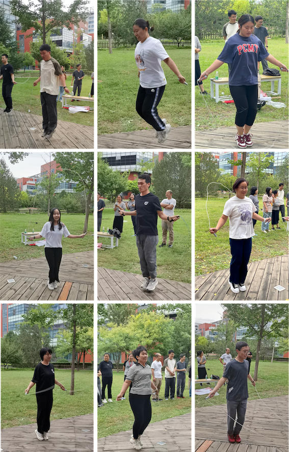 隨著裁判起跳命令響起,計(jì)時(shí)開始,緊張刺激的氛圍布滿全場(chǎng),大家揮動(dòng)雙臂、騰挪跳躍,全力以赴比拼速度與耐力。比賽現(xiàn)場(chǎng)笑聲歡呼聲不斷,精彩紛呈。